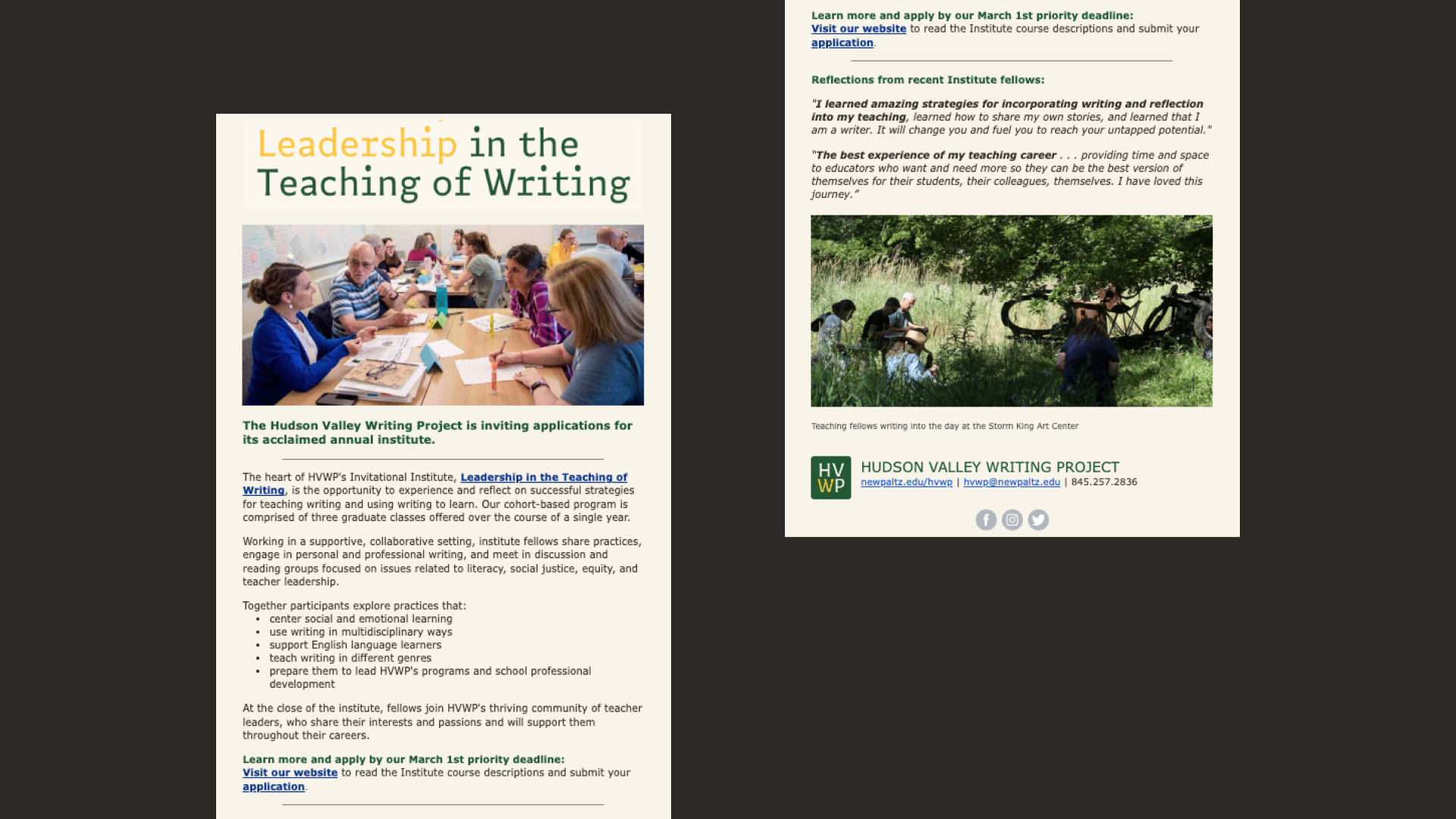 An established organization, and a site of the National Writing Project, HVWP provides powerful learning opportunities for educators in the Hudson Valley region.