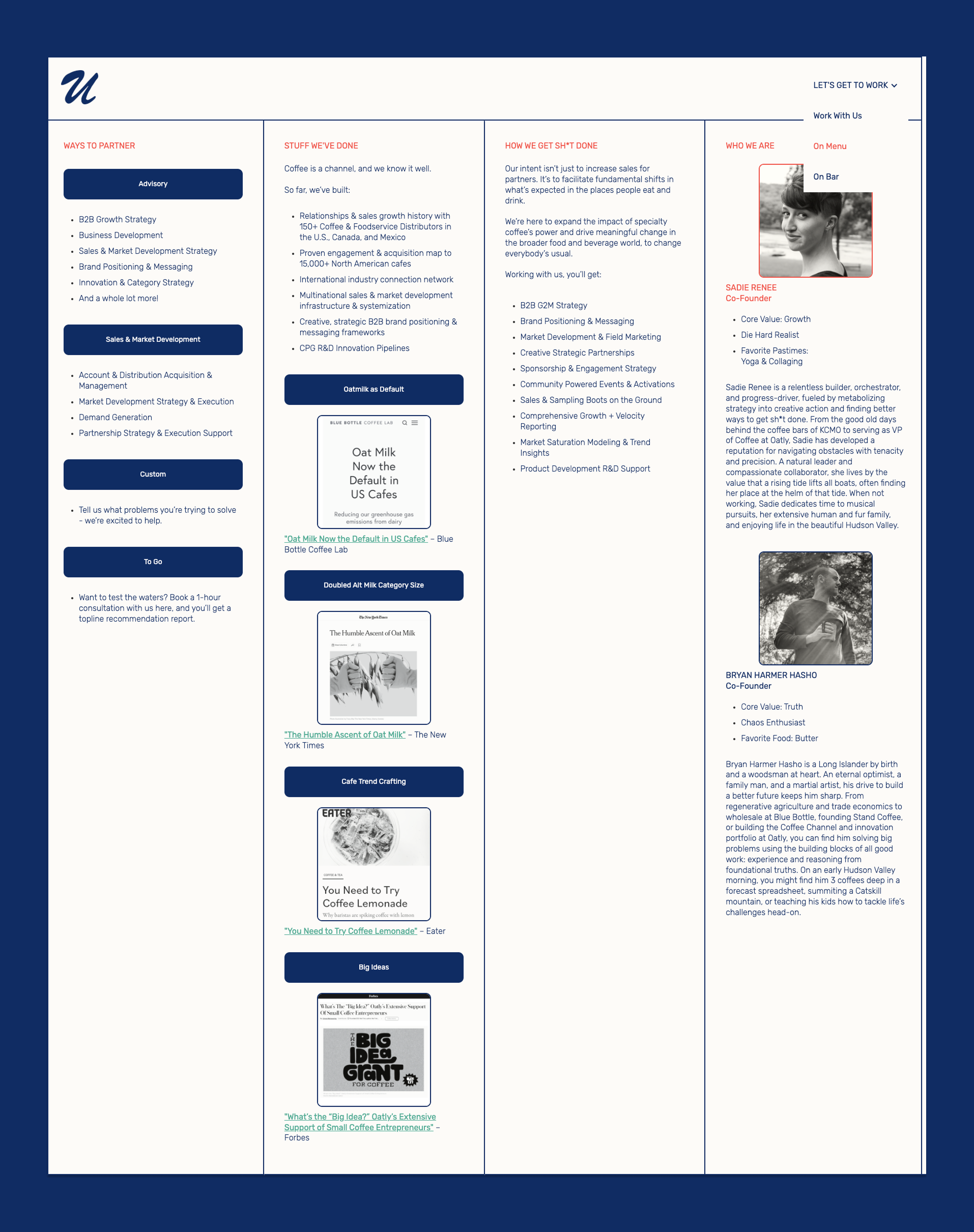 The Usual Company is a sales, strategy & market development agency that lives and breathes coffee. They partner with coffee’s most ambitious cafes, companies, and distributors to solve the industry’s biggest problems. Their cofounders approached us to build a brand and website for their agency, ahead of their launch.