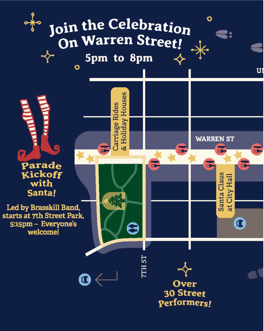 Winter Walk is an annual street festival that ushers in the holiday season with circus performers, bands, dancers, food vendors, fireworks, nighttime shopping, and vibrant decorations, and draws over 10,000 visitors to the city of Hudson, NY each year.